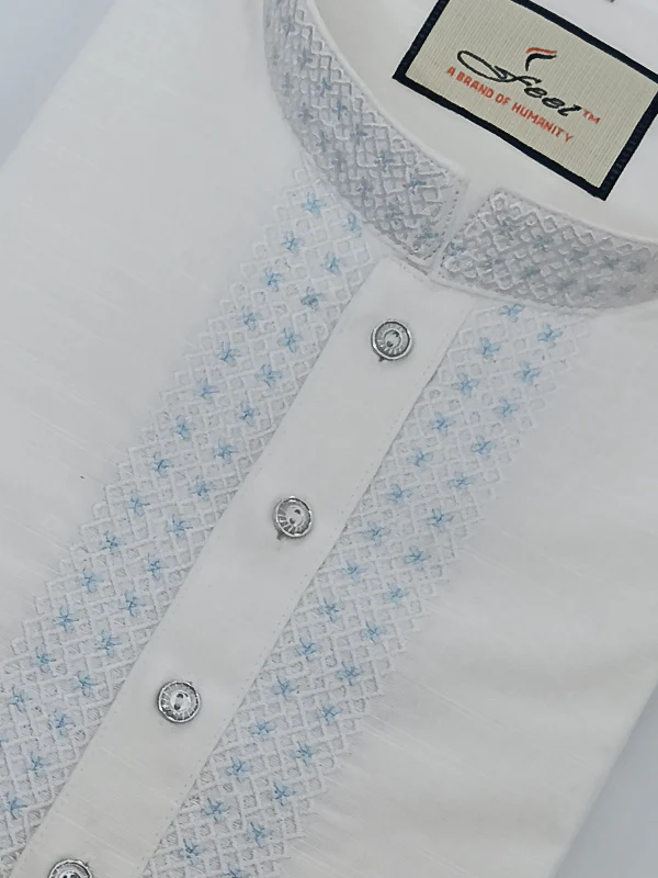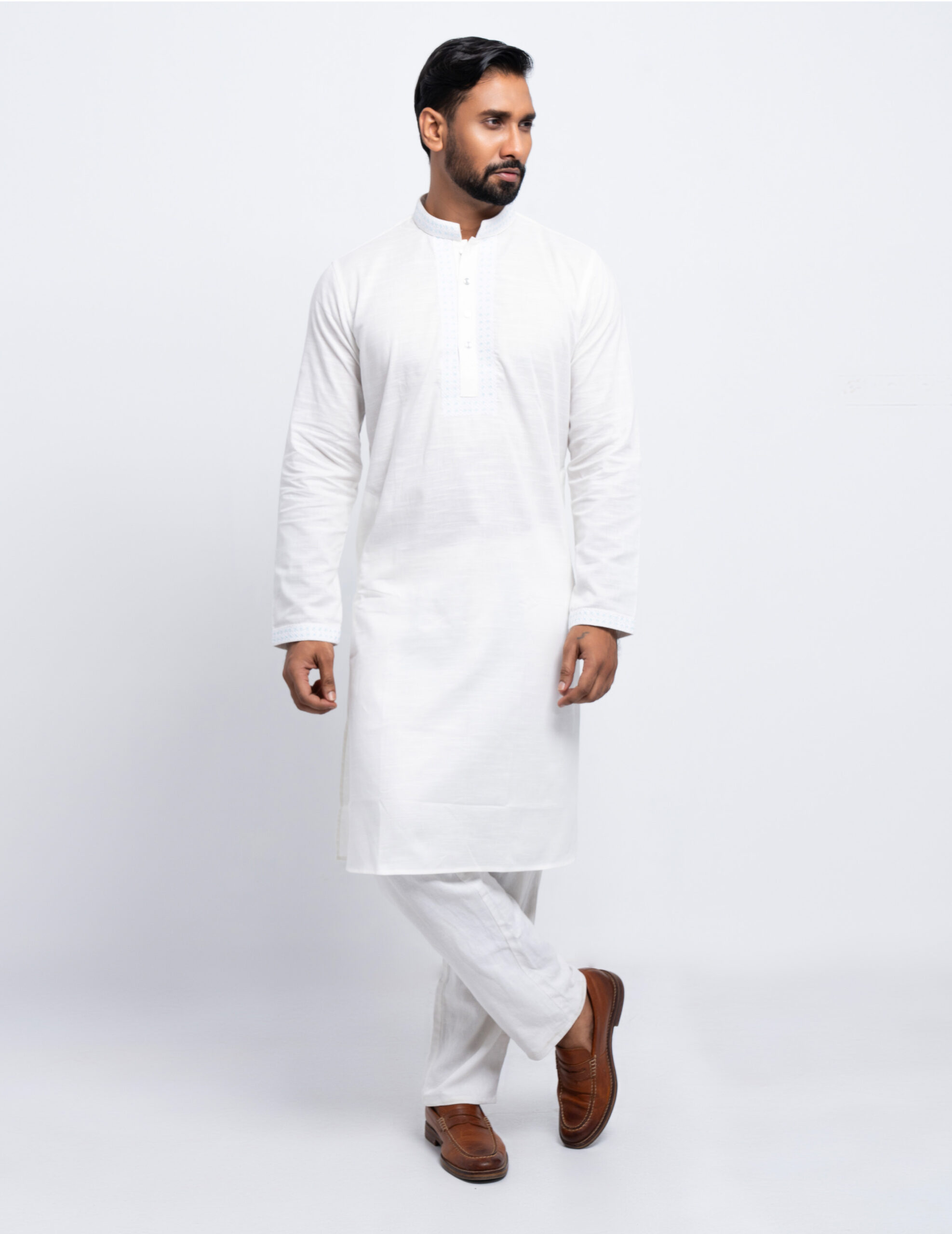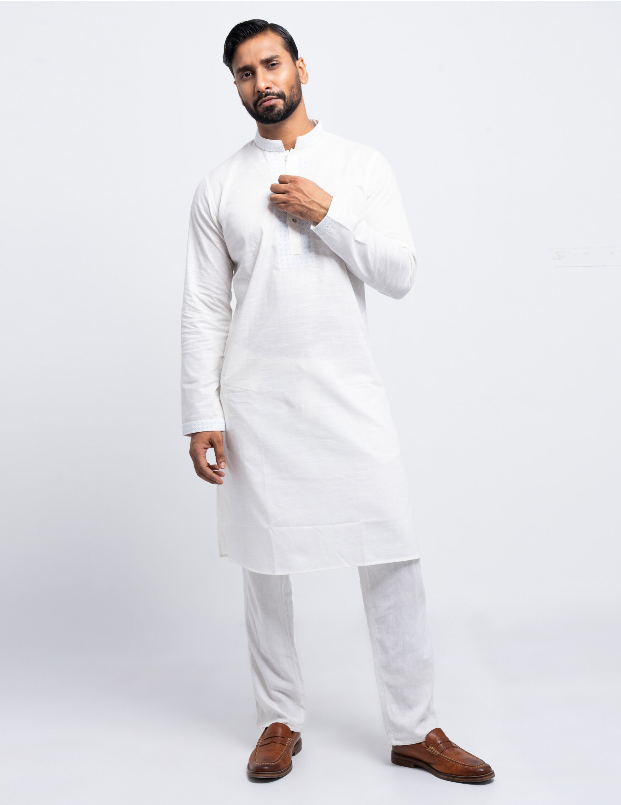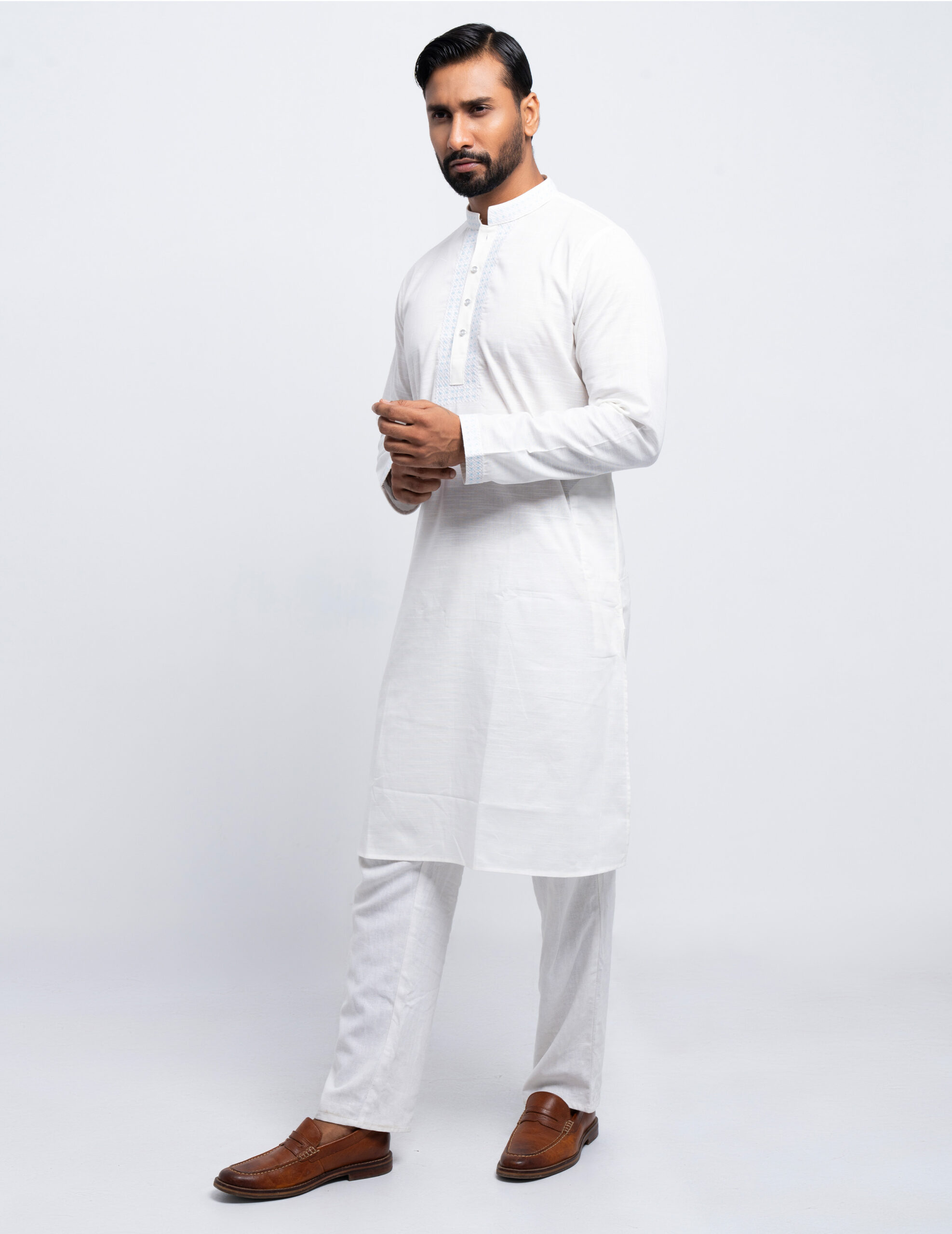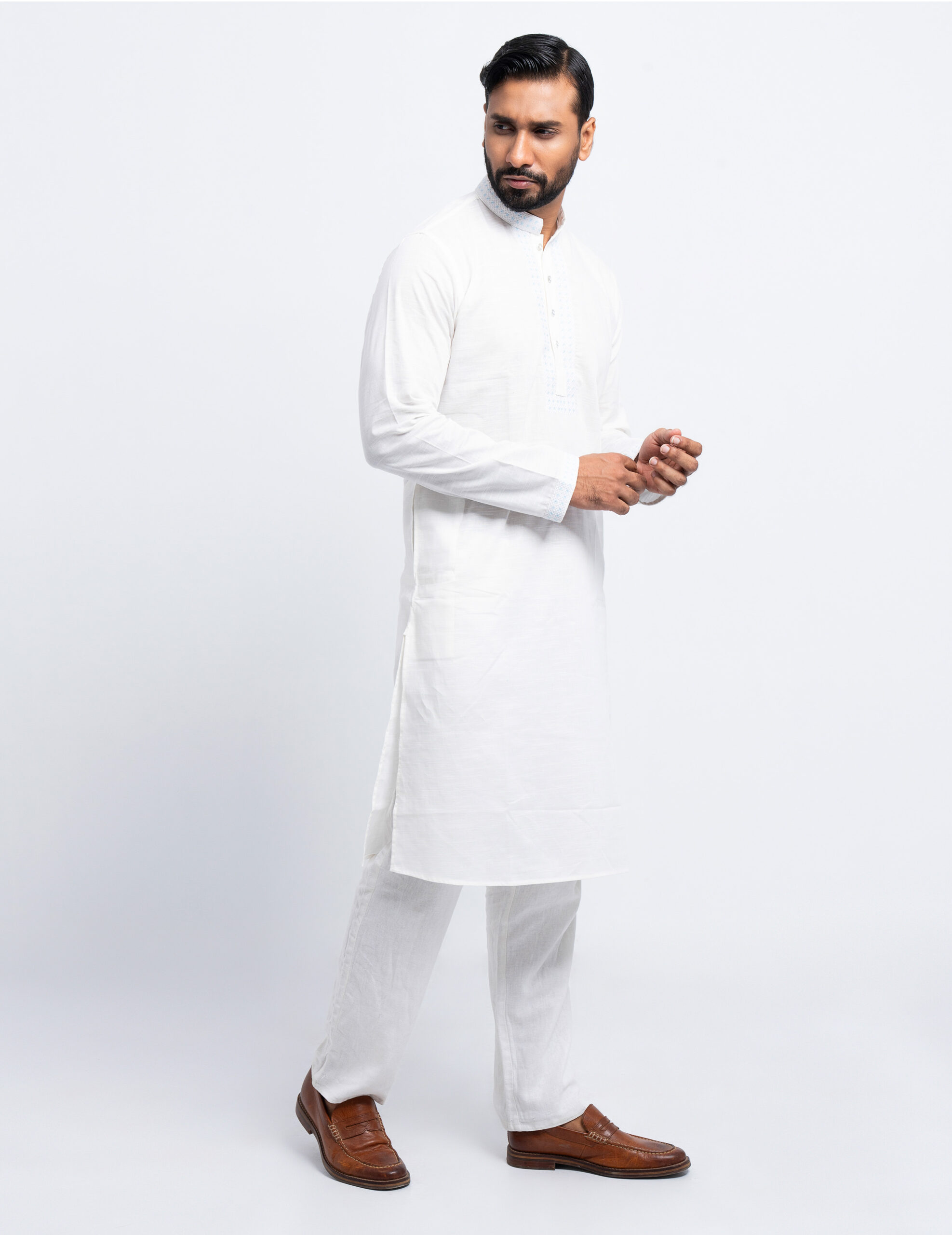 Luxury Panjabi – White SlubLuxury Panjabi – White Slub