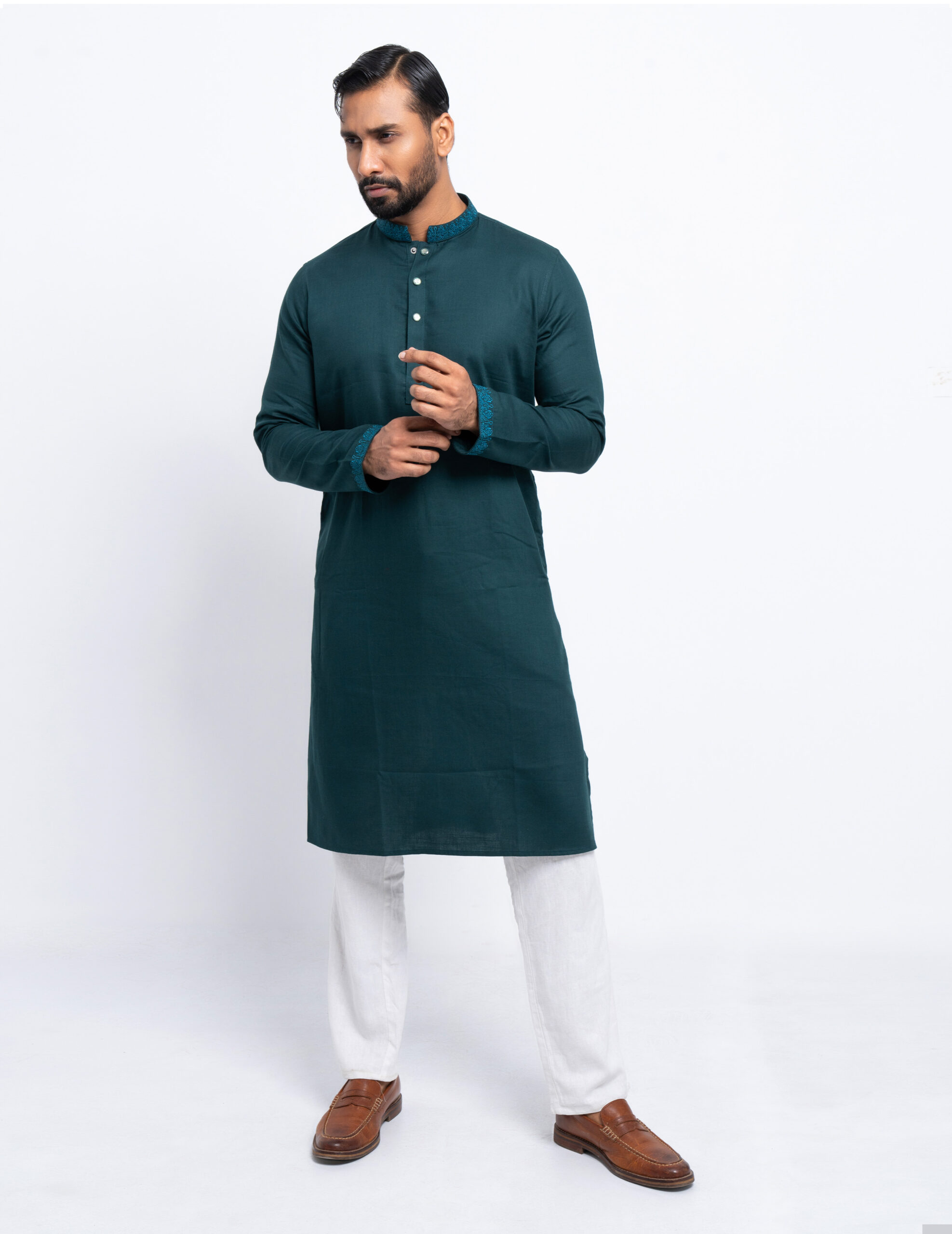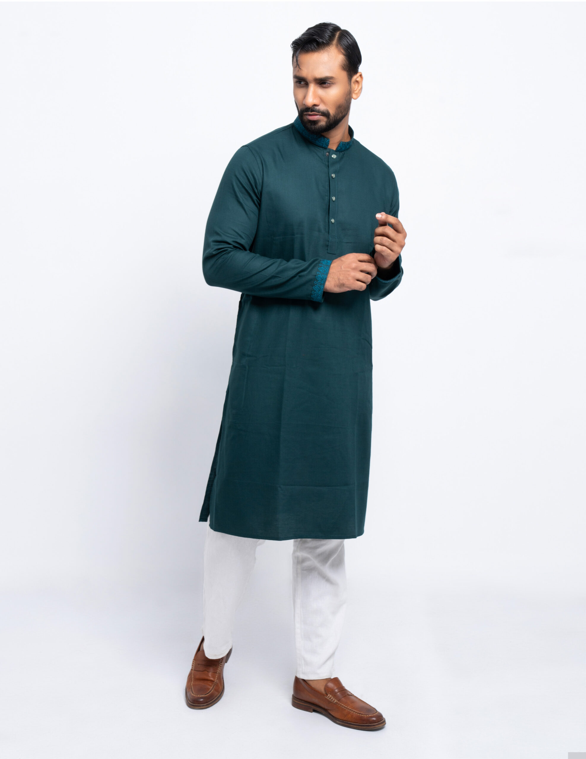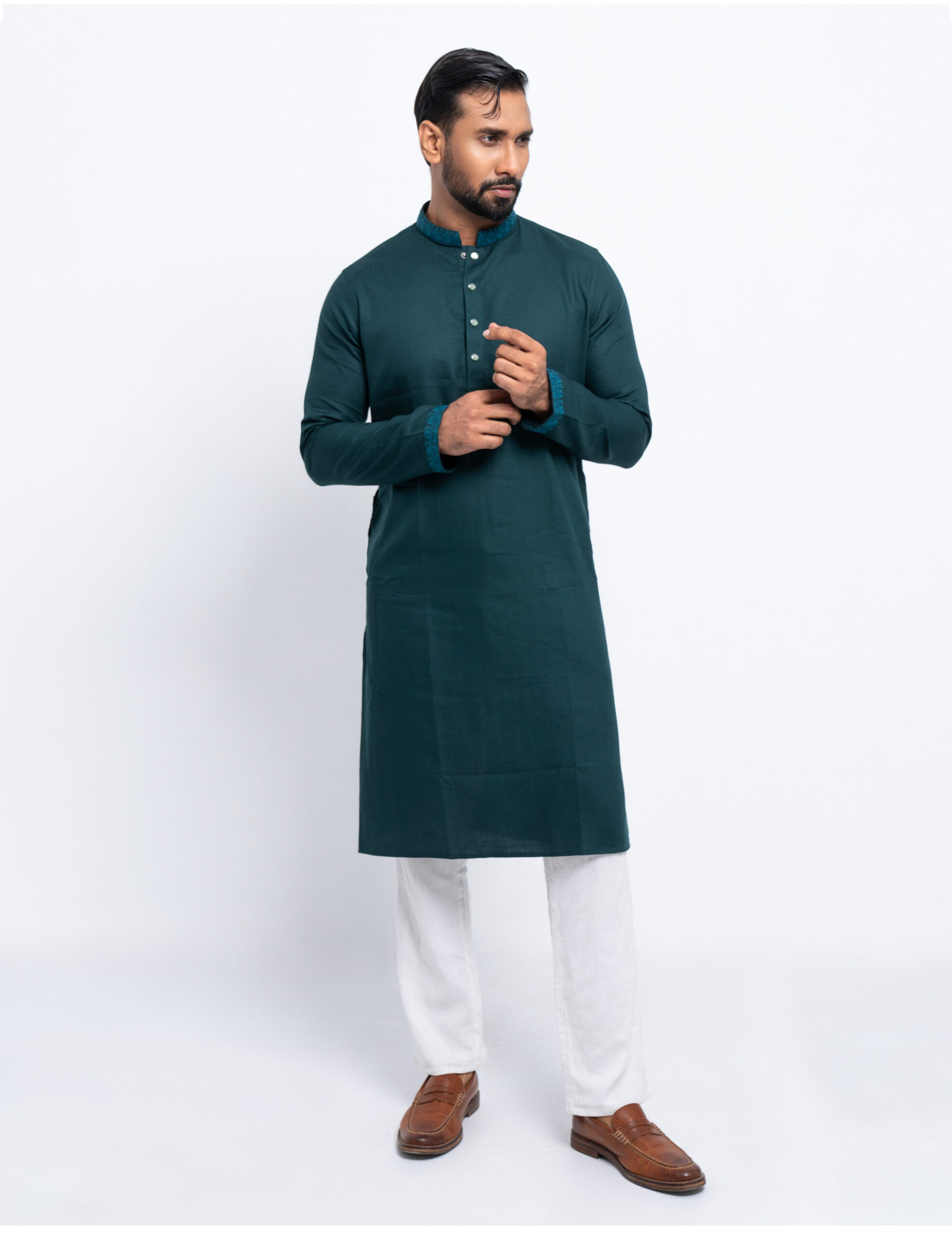 Premium Panjabi – Bottle Green HerringbonePremium Panjabi – Bottle Green Herringbone